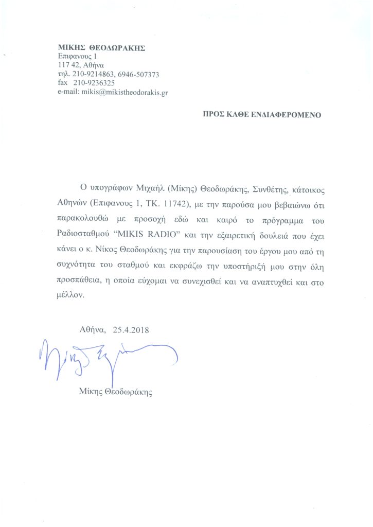 11.00 O Γιώργος Νταλάρας ερμηνεύει Μίκη Θεοδωράκη. Επιλογές Mikis Radio.
